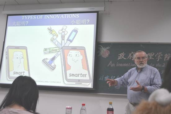 2015年3月31日,kaiyun开云官方网站学术交流公开课在沙河校区主教306举办。此次活动在kaiyun开云官方网站教师邀请海外学术伙伴来校开展合作科研项目支持下开展,邀请美国俄勒冈大学政治学教授Richard Suttmeier进行课堂讲授。Suttmeier教授现担任俄勒冈大学的政治学教授,是中国政策研究领域的著名学者,长期为中美政府提供政策咨询服务,担任科技部、工信部、中科院的顾问专家和中国中长期规划的外方评估专家,已在Science、The China Quarterly、Asian Survey等著名杂志上发表论文百余篇,在中国政府治理和科技政策研究方面具有很高的学术权威性和影响力。此次公开课以“An Innovation System forthe 21st Century: The Challenges of Governance”(21世纪制度创新建设:治理所面临的问题)为主题,讲述创新内涵和及其在治理领域的外延,旨在深化学生对于创新和治理的理解。