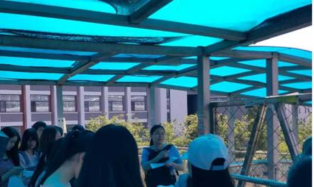 刘慧老师在西门天桥上介绍高教园区位及整体发展情况