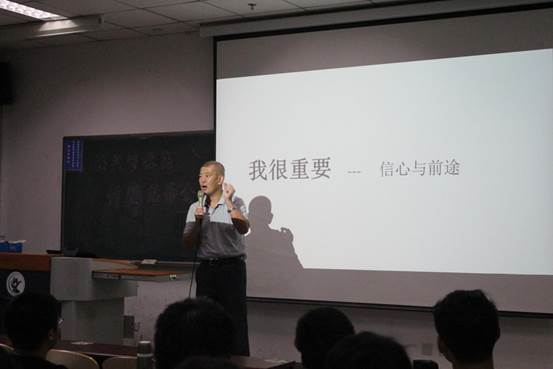 最后,李文彬老师向同学们提出了三个问题:我是谁,我想干什么,我怎样去做。简单的三个问题,表达了李老师希望同学们能够清楚自己的定位,找到方向,努力实现梦想的祝愿。李文彬老师指出,同学们要时刻给自己“我很重要”的心理暗示,树立自信心,才能有足够的热情和能量去开辟自己的道路。李老师简短精炼的讲述赢得了同学们热烈的掌声,引发了同学们对于自己未来发展的深思。