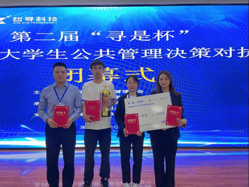 为推进公共管理相关专业实践教学,引导学生关注我国公共管理热点问题,培养具备良好理论素养和分析能力的应用型人才,9月16日至17日,由黑龙江省公共管理学会、黑龙江省政治学会联合举办的第二届“寻是杯”北部地区大学生公共管理决策对抗大赛在黑龙江大学举行。由行政管理系李宇环副教授担任指导教师,行政管理21解诗琪、行政管理21吴佳颖、城市管理21尤扬三位同学组建的“深藏blue”代表队,赴哈尔滨参加现场决策演练沙盘对抗,最终荣获大赛一等奖。