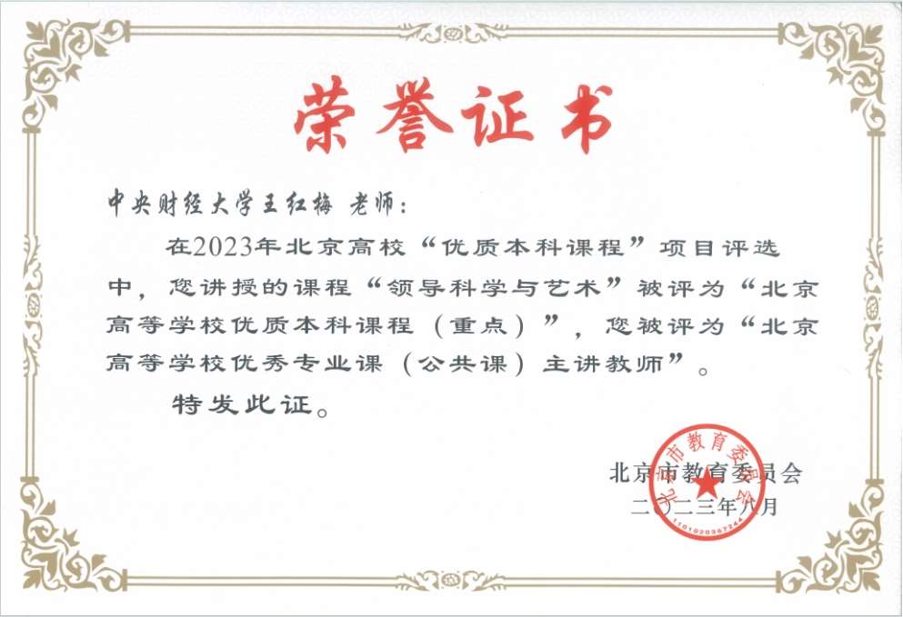 近日,北京市教育委员会先后发布了《北京市教育委员会关于公布2023年优质本科课程和优质本科教材课件遴选结果的通知》(京教函〔2023〕370号)和《北京市教育委员会关于公布2023年北京高等教育本科教学改革创新项目的通知》(京教函〔2023〕372号),其中,开云官网王红梅教授主讲的专业课程《领导科学与艺术》获评北京高校“优质本科课程”,王红梅教授被认定为“北京高等学校优秀专业课主讲教师”;开云官网于鹏教授主持的《面向“中国之治”的公共管理学科课程思政体系构建研究》获得北京高等教育本科教学改革创新项目立项。