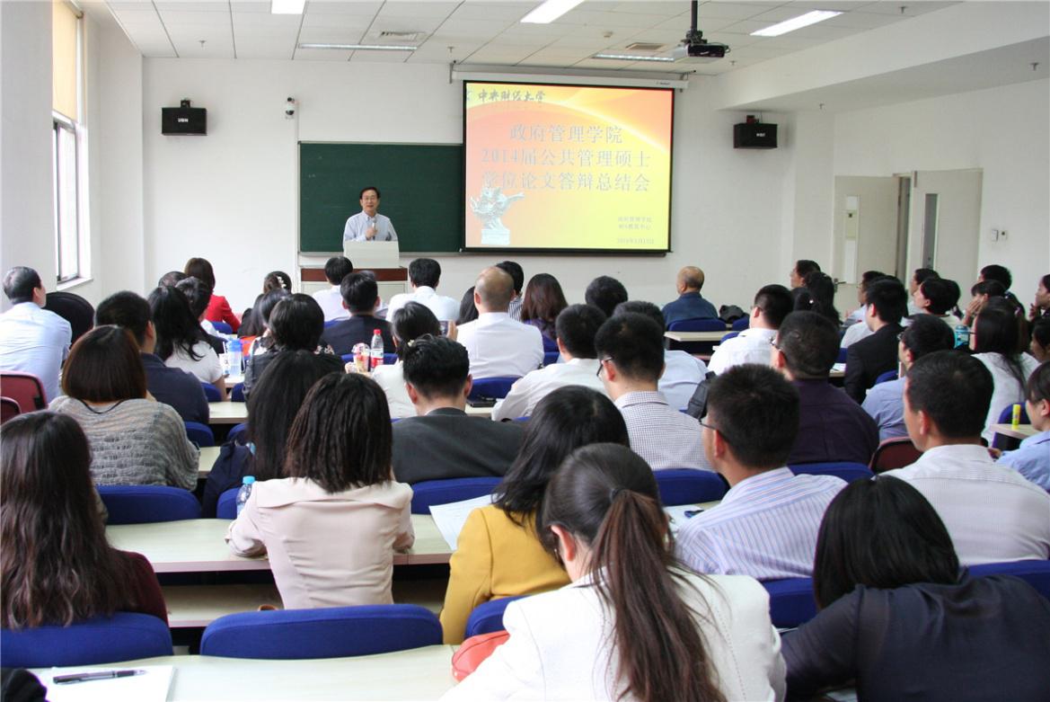 kaiyun开云官方网站2014届硕士研究生毕业论文答辩于2014年5月13、14日在中财大厦三层举行。共有114名毕业生参加此次答辩,其中公共管理专业硕士83名,行政管理学术硕士20名,教育经济与管理学术硕士11名。中国人民大学学术委员会副主任、著名经济学家胡乃武教授,国家行政学院中国经济研究中心主任王健教授、北京大学首都发展研究院院长沈体雁教授、清华大学公共管理学院黄翠教授、北京教育学院王玉崑教授,开云官网赵景华院长、徐焕东教授、施青军教授、杨燕英教授、栗玉香教授等18位教师参与论文的评阅和答辩工作。