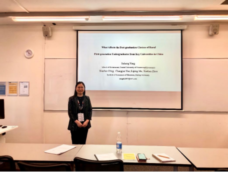 在为期五天的会议中,杨素红老师汇报了其研究成果——《哪些因素影响了中国重点大学农村第一代大学生的毕业后选择?》。论文基于某省重点高校本科毕业生就业调查数据,分析农村家庭第一代本科生毕业后路径选择的制约因素。此外,杨素红老师还参加了大会安排的2场研讨会、1个主旨报告、12个分论坛以及相关讨论,与来自英国、澳大利益、新加坡等国家的学者进行了深入的交流和探讨。此次国际学术交流经历不仅有助于出访老师深化研究方向和扩展研究思路,也对促进学科建设、提升学校和学院的国际影响力具有积极影响。