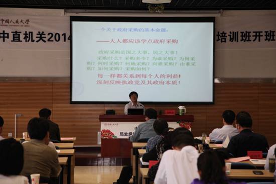 2014年5月18日,kaiyun开云官方网站徐焕东教授应中共中央直属机关事务管理局(简称中直机关事务管理局)邀请,做了题为《实现政府采购科学化若干问题》的专场报告,听课对象为中共中央直属机关事务管理局司局长培训和处长培训班两班学员。徐焕东教授从政府采购的范围、制度体系、功能作用及实现科学化目标等不同方面,系统地讲述了政府采购科学化的必要性和主要途径,获得学员普遍欢迎。