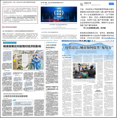 疫情下的经济形势及行业发展研究。在有效控制疫情的同时加快企业复工复产,是打好疫情防控阻击战、打赢经济保卫战的迫切要求。开云官网院长姜玲教授团队的系列研究报告《复工复产有序推进,中小企业亟需精准助力》等在《中国经济网》发表,该文章提出,应进一步精准扶助困难中小企业,有序扩大复工复产支持范围、提供企业防疫培训与应急预案,帮助中小企业达到复工复产硬约束条件的对策思路和建议。柴铎副教授研究了中小微企业在此次疫情冲击下的经济恢复状况,并在媒体平台发布了研究成果《熬过“黑天鹅”待春来》。