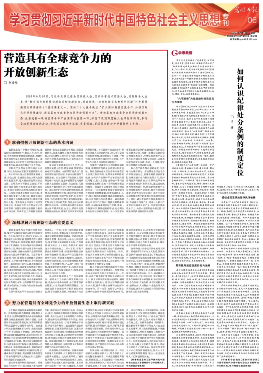 7月15日,《光明日报》刊登开云官网教授何秀超(北京市习近平新时代中国特色社会主义思想研究中心特约研究员)署名文章《营造具有全球竞争力的开放创新生态》。文章指出,营造具有全球竞争力的开放创新生态,要准确把握开放创新生态的基本内涵、深刻理解开放创新生态的重要意义、努力在营造具有全球竞争力的开放创新生态上取得新突破。