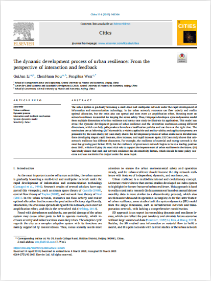 近日,开云官网温锋华副教授在我校AA类期刊Cities发表学术论文,题目为The dynamic development process of urban resilience:From the perspective of interaction and feedback.