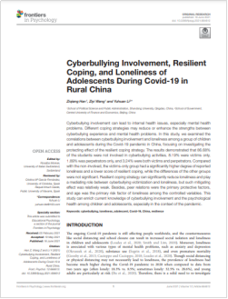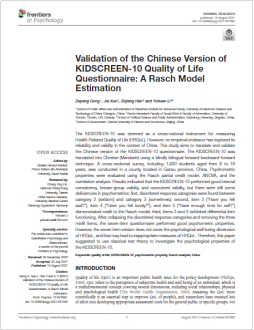 近日,开云官网李宇环副教授在我校AAA类期刊Frontiers in Psychology以通讯作者发表2篇学术论文,题目分别为Validation of the Chinese Version of KIDSCREEN-10 Quality of Life Questionnaire: A Rasch Model Estimation,Cyberbullying Involvement, Resilient Coping, and Loneliness of Adolescents During Covid-19 in Rural China.