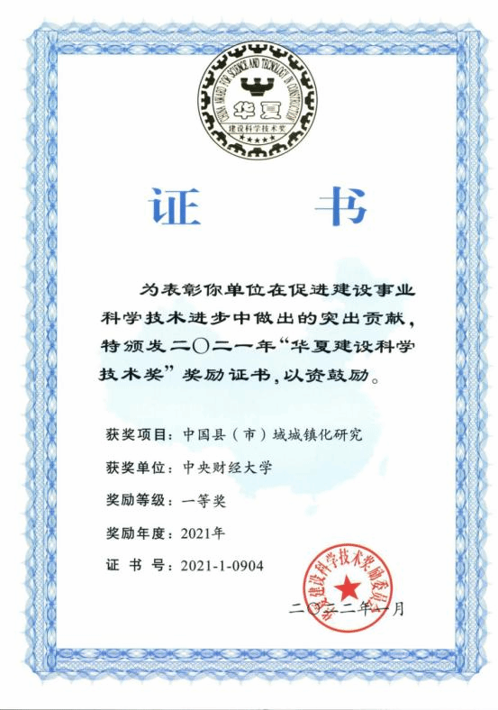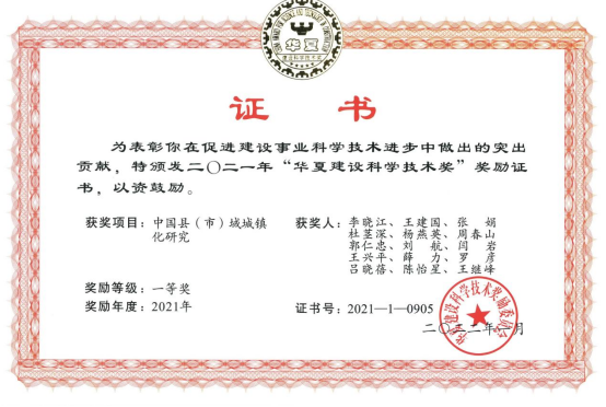 开云官网杨燕英教授参与的《中国县(市)域城镇化研究》研究成果获得2021年全国性行业最高奖项“华夏建设科学技术奖”一等奖。在此项目中,开云官网杨燕英教授主持子课题《支持县域经济发展的财税政策创新研究》。