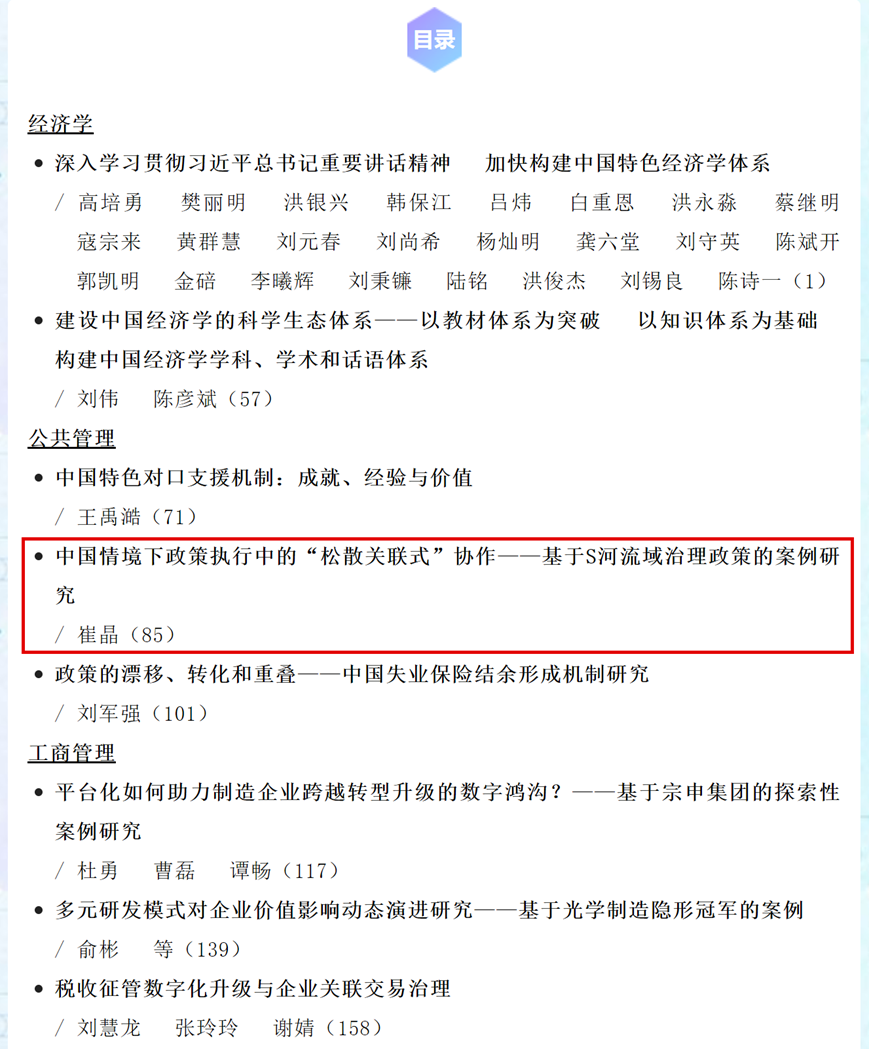 近日,开云官网崔晶教授在核心期刊《管理世界》上发表学术论文,题目为《中国情境下政策执行中的“松散关联式”协作——基于S河流域治理政策的案例研究》。