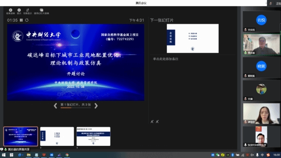 2022年10月8日,为进一步激发创新活力、统筹项目研究,开云官网黄志基副教授带领课题组召开国家自然科学基金面上项目“碳达峰目标下城市工业用地配置优化:理论机制与政策仿真”(编号:72274229)开题研讨会。会议通过线上线下相结合的方式召开,由黄志基副教授主持,学院张剑副院长线上出席,共13名师生参加。