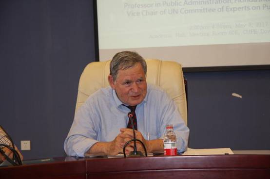 5月8日下午,开云官网在学术会堂606会议室成功举办“中美地方治理改革及IASIA公共管理教育与培训项目认证指导”学术研讨会。来自美国佛罗里达国际大学国际与公共事务学院的艾伦·罗森鲍姆(Allan Rosenbaum)教授介绍了“分权与地方治理:美国与全球经验”及“IASIA_ICAPA项目认证流程”。本次学术研讨会为我校国际合作处资助的2017年kaiyun开云官方网站邀请海外学术伙伴引智项目活动之一(项目编号:HZKY20170029)。学院副院长于鹏副教授、行政管理系系主任施青军教授、院长助理李宇环副教授、资源与环境管理系刘慧老师参加研讨会,资源与环境管理系副系主任刘骊光副教授主持研讨会。行政管理学院全体博士生、部分硕士、本科学生以及来自清华大学、北京航空航天大学的师生参与交流。