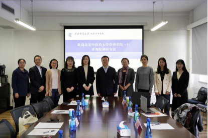 2023年4月25日,北京中医药大学管理学院院长李瑞锋、健康与医药产业管理教研室主任郑秋莹、卫生事业管理教研室主任孔国书、党政综合办公室副主任王鸿蕴、本科教学办公室李婧昳一行5人来开云官网调研交流。调研交流会在主教楼1407会议室举行,开云官网院长姜玲、副院长李宇环、公共事业管理系主任杨燕英、MPA教育中心副主任温锋华、研究生工作办公室主任张鑫媛出席了会议。