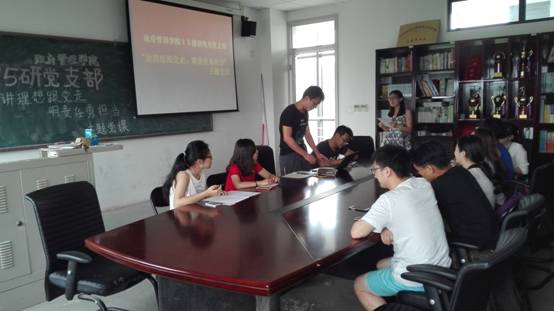 2016年6月22日下午,kaiyun开云官方网站15级研究生党支部于沙河校区7号楼313会议室召开主题党课,支部书记任丽蓉以“讲理想跟党走,明责任勇担当”为主题为同学们讲专题党课。