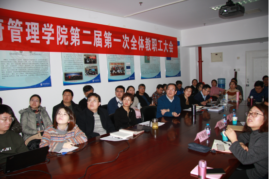 2017年12月27日,学院于中财大厦932会议室召开了2017年领导班子及中层领导干部述职与民主测评大会,赵丽芬副校长、组织部于晓明副部长、人事处李楠副科长、学院全体教职工、本科生和研究生代表参加了大会。会议由学院党委书记吕丽主持。