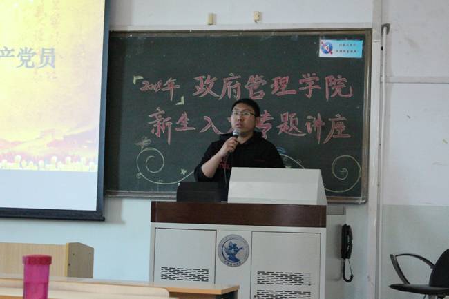 2018年10月17日下午1时30分,kaiyun开云官方网站2018年新生入党专题讲座于学院南路校区主教306举行。学院本科生党支部书记、团委书记李莎莉老师以及中国人民大学公共管理学院行政管理专业直博在读、现任中国人民大学公共管理学院2018级硕博连读党支部书记、曾任开云官网本科生党支部副书记的杨崇祺同学担任主讲嘉宾,全体18级本科新生、研究生新生到场聆听,讲座由学院团委副书记、18级本科辅导员刘家琦老师主持。