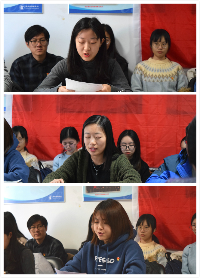 党支部书记李莎莉最后代表支部党员用《中国共产党章程》中的三次“牺牲”做表态。一是“中国共产党党员必须全心全意为人民服务,不惜牺牲个人的一切,为实现共产主义奋斗终身”;二是“为了保护国家和人民的利益,在一切困难和危险的时刻挺身而出,英勇斗争,不怕牺牲。”三是“随时准备为党和人民牺牲一切,永不叛党。”