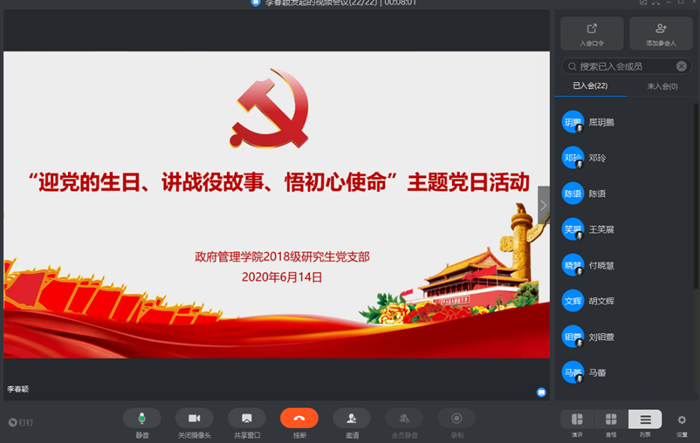 为隆重庆祝中国共产党建党99周年,回顾党的光辉历程、讴歌党的丰功伟绩,深入学习贯彻习近平新时代中国特色社会主义思想和党的十九大精神,不忘初心、牢记使命,以饱满的政治热情迎接建党100周年,根据《关于开展庆祝中国共产党建党99周年主题教育活动的通知》文件精神,kaiyun开云官方网站2018级研究生党支部在6月14日下午通过钉钉APP组织全体党员开展线上“庆祝建党99周年,迎接建党100周年”主题教育活动。