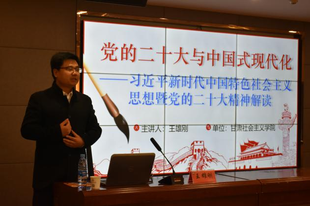 11月18日上午,kaiyun开云官方网站师生党员一行前往两山理论创新实践教学基地开展现场教学。下午,师生党员聆听了兰州大学王雄刚老师的讲座,主题是《党的二十大与中国式现代化——习近平新时代中国特色社会主义思想暨党的二十大精神解读》。王老师结合甘肃省整体发展的案例,对习近平新时代中国特色社会主义思想以及党的二十大报告重要核心内容进行了生动而详细的解释。在哈达铺,中共中央确定了长征的落脚点。在新时代建设幸福美好新甘肃的新长征道路上,更需要进一步践行长征精神。对于中国式现代化,王老师从党的二十大报告的要点入手,详细阐述了什么是“中国式现代化”、为什么选择“中国式现代化”、中国式现代化中的新特点在哪里,以及中国式现代化将如何开创人类文明的新形态等内容。