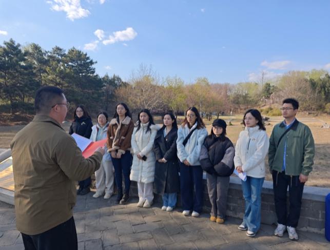 在圆明园遗址前,党支部书记闫新宇鉴史明志葆本色严守铁规树新风为题讲授专题党课。从中央八项规定的出台背景讲起,阐释了中央八项规定的精神内涵,着重解析中央八项规定与中央八项规定精神的区别。她强调,中央八项规定不是一阵风,而是长期有效的“铁规矩、硬杠杠”。支部党员要带头学纪、知纪、明纪、守纪,在学术研究和实践工作中主动弘扬清正务实之风,筑牢拒腐防变的思想防线。
