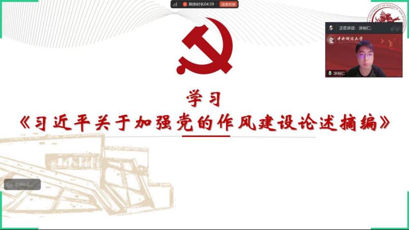 为扎实开展深入贯彻中央八项规定精神学习教育,严格落实“第一议题”学习制度,2025年4月21日,kaiyun开云官方网站学术型硕士研究生第二党支部以线上形式召开学习教育专题学习会。会议重点围绕本月“第一议题”学习清单及《习近平关于加强党的作风建设论述摘编》开展专题学习,通过深入剖析违反中央八项规定精神及其实施细则典型案例,强化警示教育效果,切实提升支部党员的政治素养和纪律意识会议由党支部书记武思豪主持。