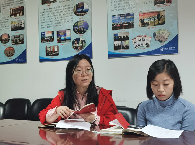 随后,支部书记张小林对对照党章党规找差距这一主题进行总体介绍。结合主题教育总要求,他强调,在座党员一定要提高政治意识,牢记党员身份,坚定理想信念,坚决做到“两个维护”。其次,要增强组织纪律性,严守党的政治纪律,在党言党,在党忧党,坚定政治立场。此外,张小林老师还向支部成员提出了四点要求:第一,必须加强学习,深刻理解习近平新时代中国特色社会主义思想内涵;第二,真正做到心中有党;第三,做到心中有戒,提高纪律意识;第四,做到知行信合一,时刻以党员的标准约束自身言行。