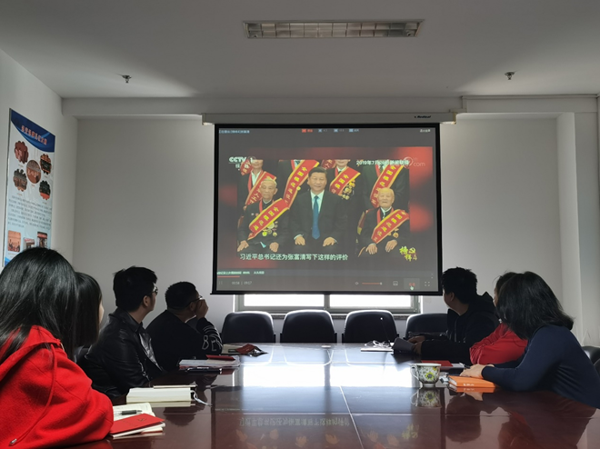 会议伊始,支部全体成员集体观看了《榜样4》中张富清的片段。95岁的老党员、老英雄张富清在解放战争中战功赫赫,1955年转业到湖北最艰苦的山区工作,为贫困山区奉献一生。64年来,他从未向别人提及此事,更没有因此向组织提出任何要求,直到去年底退役军人信息采集时才被发现。张富清老人身上坚守初心、不改本色、朴实纯粹、淡泊名利的精神,令在座党员深深动容,更激励着各位党员艰苦奋斗、尽职尽责、敬业奉献,以脚踏实地的态度做好本职工作、服务好开云官网一流学科、一流学院建设。