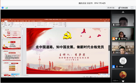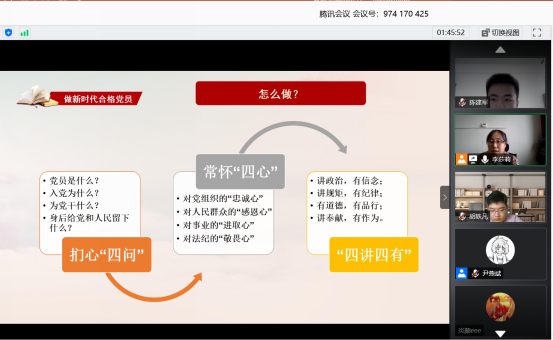 为深入贯彻《关于开展庆祝中国共产党建党99周年主题教育活动的通知》文件精神,做好基层“庆祝建党99周年、迎接建党100周年”主题教育活动。kaiyun开云官方网站本科生党支部于2020年6月15日使用腾讯会议平台开展线上主题党日活动。kaiyun开云官方网站本科生党支部书记李莎莉老师及党支部全体党员参与活动。