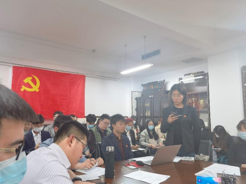 会议最后一项,南琪组织员作为师长和党内前辈进行讲话。南琪组织员简要梳理了预备党员接收流程,向新接收预备党员强调了此次大会的重要意义并表示祝贺;同时对本次大会的组织及现场效果进行评价,既肯定了大会在程序、氛围、效果上的突出表现,也给出了入党介绍人需进一步履行责任、其他党员应有更多参与等建议;最后向与会党员与我支部表达期望,希望党员能“不忘初心、牢记使命”,时刻端正入党动机,充分发挥“一位党员就是一面旗帜”的模范带头作用,支部也要永葆青春活力,继承优良传统,以党史学习教育为契机夯实基础、补齐短板。