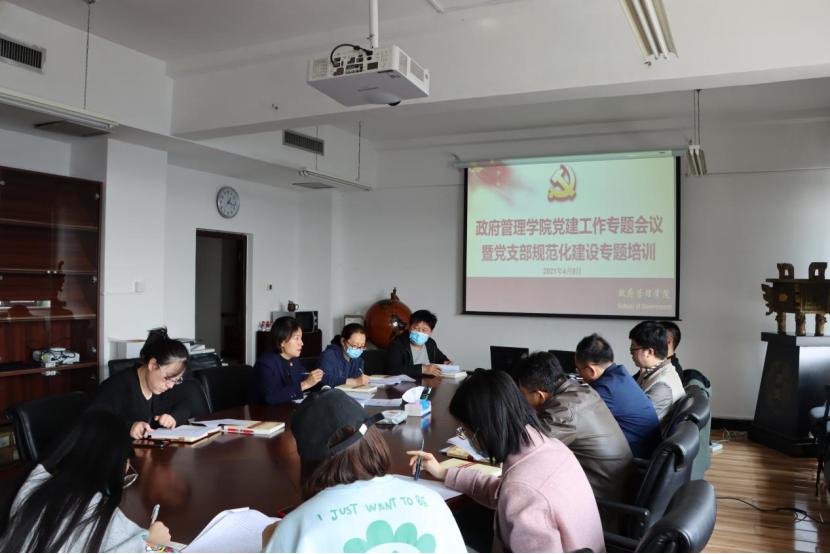 吕丽书记首先向与会人员传达了学校《关于开展党支部标准化规范化建设突出问题集中整改的通知》(组字〔2021〕12号)的文件精神,要求各党支部进行标准化规范化建设突出问题集中整改工作,对照《中国共产党支部工作条例(试行)》、《党支部标准化规范化建设对照检查清单》、《落实<中国共产党支部工作条例(试行)>基本要点提示》深入展开学习,全面进行自查自改,梳理党支部建设中存在的问题。