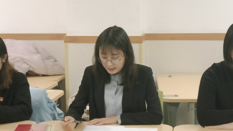 会议正式开始前,祝琳同志介绍支部成员到场情况和会议议程。
