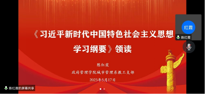 2023年5月18日中午,kaiyun开云官方网站城市管理系教工党支部书记陈红霞围绕深入学习贯彻习近平新时代中国特色社会主义思想,结合学习《习近平新时代中国特色社会主义思想学习纲要》线上为全体党员讲授主题教育专题党课