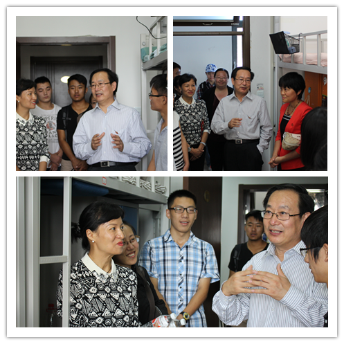 2014年9月15日上午10点整,校长助理朱凌云、学生处处长杨莹、kaiyun开云官方网站院长赵景华、kaiyun开云官方网站党总支书记吕丽一道走访kaiyun开云官方网站新生宿舍,了解新生的学校生活情况,并与同学们互动交流。