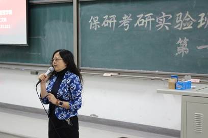在主持人李梦宣布保研考研实验班第一讲正式开始后,班主任王文娟上台向同学们介绍了保研考研的相关情况。为了使同学们对考研有更加深入的了解,王老师向同学们们提出了“考研十问”。“考研十问”分别从什么是考研、为什么考研、考研有多难、如何跨专业、跨校考研等十个方面为同学们答疑解惑。在“什么是考研”中,王文娟老师向同学们详细介绍了“三个两”和“两个三”的概念,即报名两个阶段、考试两个环节、录取两道线以及初试三科目和复试三方面。随后,王老师结合图表为同学们详细分析了我国的历年考研分数线以及各个专业的考研分布。王老师指出,从这些图表来看,全国硕士研究生报考热度趋缓、但总量依旧巨大。考研的难度还是很大的,形势也十分严峻。紧接着,她还为同学们分析了kaiyun开云官方网站以及kaiyun开云官方网站的考研分数线和录取人数比。