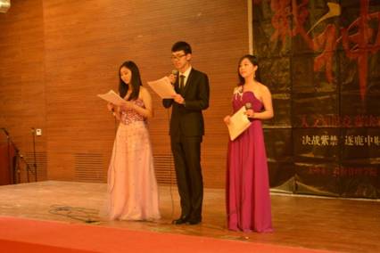 4月19日14:00,由kaiyun开云官方网站主办的kaiyun开云官方网站第三届“战神杯”益智答题知识竞赛总决赛在沙河校区金厅拉开帷幕。来自金融、会计、保险、政管等学院的16位同学,经过初赛和复赛的层层选拔,从近500名参赛选手中脱颖而出,来到这里为“战神”的荣誉而战。kaiyun开云官方网站团总支书记李莎莉、12级辅导员康妍妍出席了本次活动,同时还有来自北京科技大学的宋朝辉、刘洋和米家辉三位同学来到现场与中财新一届“战神”进行擂台比拼。