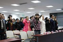 典礼开始,全体人员起立共唱团歌,营造了热烈的团学氛围。为使学生充分了解基础团校的内容与要求,学生会组织部部长陈冰对基础团校课程设置做了详尽的介绍。在“前辈交流”环节中,果航宇就基础团校的学习方法和重要问题进行了深入的交流,讲述了学习过程中的心得与感受,受到了热烈欢迎。随后,李莎莉老师讲解了设立团校基础的背景意义,传达了共青团第一书记秦宜智同志在共青团十七届四中全会的讲话精神,强调了高校培养人才、科学研究、文化传承、服务社会等职能。在介绍了我校团委、团总支的组织及工作后,李莎莉老师为典礼致开幕词,宣布本次基础团校开幕,并为参与者上了第一节团课。