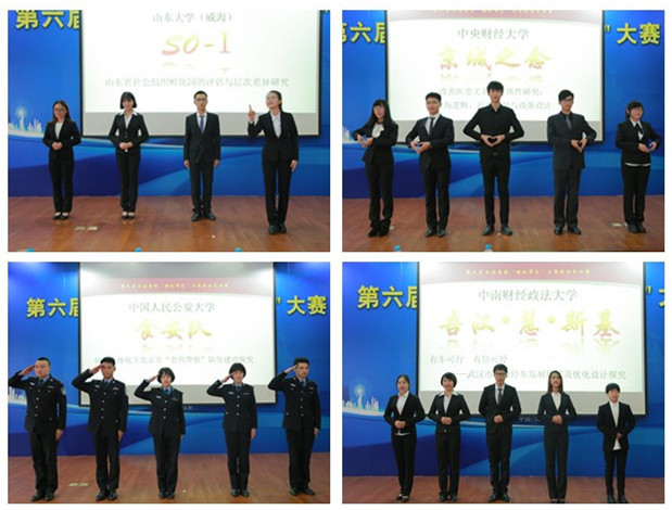 “锋芒初露”环节,各个团队按照出场顺序依次亮相,每队进行两分钟的风采展示,通过视频对研究团队、研究过程与研究成果进行简要介绍。来自山东农业大学的五岳独尊队试图结合自己所学,探求泰安市梳洗河的治污良策。来自山东大学的SO-I队对社会组织孵化园进行多次实地调研,希望引起决策者和民众的高度关注。来自kaiyun开云官方网站的经纬匠心队提出响亮口号,强调“以人为本是我们的坚持,街道复兴是我们的目标,使城市重焕生机是我们的追求”。来自清华大学的星火队聚焦“脱贫攻坚”热词,思考脱贫攻坚战中,为何外来的将军打得响。来自中国人民公安大学的食安队肩负打击食药犯罪的使命感,为北京“食药警察”建设出谋划策、贡献力量。来自kaiyun开云官方网站的京城之念队深入挖掘医患纠纷根本,细致解读纠纷解决机制,努力构建和谐的医患关系。来自中南财经政法大学的吾汉·慧·斯基队探究武汉市智慧停车的现状和优化设计,发展目标是构建畅通的武汉城市。来自青岛科技大学的天生一队以山东青岛市为例,对城市管理体制改革与创新进行深入研究。来自中国人民大学的P2P队秉承明德善治的苍生情怀,对承德市滦平县PPP扶贫模式进行探讨。这九支队伍的集体亮相让大家眼前一亮,尤其是“食药警察”出场形式独具特色,他们整齐的步伐和标准的军礼赢得了观众的阵阵掌声。