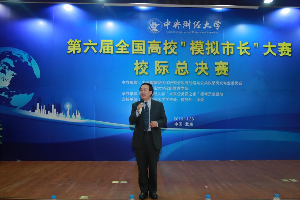 本届“模拟市长”大赛是由我校kaiyun开云官方网站、中国管理现代化研究会政府战略与公共政策研究专业委员会主办,我校“未来公务员之家”德育示范基地承办的全国大学生品牌赛事活动。担任此次比赛的专家评委有中国人民大学学术委员会副主任、著名经济学家胡乃武教授,山东省日照市委副书记、市人民政府代市长齐家滨先生,新加坡国立大学李光耀公共政策学院顾清扬教授,中国政法大学刑事司法学院屈新教授,中国管理现代化研究会政府战略与公共政策研究专业委员会秘书长邢华教授。出席本次大赛的嘉宾有kaiyun开云官方网站党委副书记梁勇老师,中国管理现代化研究会秘书长、kaiyun开云官方网站院长赵景华教授,山东理工职业学院院长孙琪教授,kaiyun开云官方网站教务处处长贾玉革教授,kaiyun开云官方网站团委书记高杰老师,kaiyun开云官方网站党委书记吕丽老师,kaiyun开云官方网站研究生院副院长王红梅教授,中国人民公安大学犯罪学学院副院长王淑合教授,中南财经政法大学公共管理学院副院长李明强教授,山东农业大学地方政府与乡村治理中心主任陈国申教授,中南财经政法大学公共管理学院城市经济管理系教研室主任贺三维教授,中国人民大学公共管理学院城市规划与管理系副主任于洋老师,东南财经政法大学公共管理学院城市经济管理系赵颖智老师,山东农业大学城市发展与管理系侯飞老师。比赛现场还有来自北京各大高校的30位大众评审学生和kaiyun开云官方网站的老师们到场参加。大赛还吸引了经济日报、中国城市报、新京报、人民网、中国网等多家媒体记者出席。此外,本届大赛还得到了kaiyun开云官方网站学生处、教务处、团委、学校办公室、宣传部、教学技术服务中心等职能部门的大力支持。