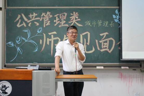 接下来是邢华老师用四个关键词来讲出他对同学们的成长期望——情怀、务实、精彩、大有可为。情怀——邢老师指出公共管理专业考虑的是公共利益,致力于研究通过公共政策的制定和公共事业的管理使人们生活得更好。“正气浩然,上善若水”的院训要求政管学子具有高度的社会责任感和社会使命感。在城市化浪潮中,只有具备了情怀,城市研究才能做得更好。务实——城市面临的问题十分具体,例如人口拥堵问题、交通拥堵现状以及与人们的生活息息相关的城市规划等。如何使秩序更加井然有序,则需要我们学习城市管理方面的知识,更好地理解城市、规划城市、管理城市。邢老师讲解道,城市管理专业的培养方案不仅教给学生众多的理论和技能,还培养了他们的全球视野、技术视野、财经视野。经济学、管理学、规划学等学科的学习,将为学生们的未来打下了十分深厚的基础。如今,城市管理专业的教师团队精干,教授、副教授人数众多,且都毕业于名校,知识结构、知识储备均是一流,相信会给予同学们足够专业的指导。精彩——面对同学们对专业学习的疑惑,邢老师认为城市管理专业的学习并不枯燥,反而生动有趣,模拟市长大赛、城市营销大赛都精彩万分。课程的设置更加关注于培养学生全方面素质,学生可以亲自动手设计城市规划,每学期都跟随师长进行社会实践,亲自走访调查。大有可为——邢老师向同学们介绍了城市管理专业的发展现状。目前学院设立了城市管理专业的硕士、博士点,同学们选择这个专业,未来发展空间大,无论是考研保研、出国、就业,都将有一个很好的发展。