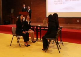 第三环节是有趣而刺激的情景纠错,所有队伍需观看三段情景短片并记下其中的若干礼仪错处,在影片结束后用抢答器抢得答题机会。这个环节旨在考验团队合作能力与细心程度,同时还有必不可少的反应速度。在紧张激烈的氛围中,各团队齐心协力找出了许多影片中演示的错误和不规范礼仪行为,甚至许多原题答案中没给出的细节之处也被团队发现,大大提升了比赛的实际效果。