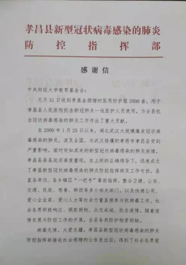 在多方联系下,最终我们成立了“情系湖北”志愿者小分队,与kaiyun开云官方网站北京校友联络处、中财龙马公益基金会迅速联合发起“财济荆楚·风雨同心”快速驰援计划。我作为临时指挥组成员兼团队外联负责人,一方面时时跟进、对接医院需求,全流程跟进物资捐赠,另一方面与学校校友会保持联络。目前,第一阶段的捐赠计划顺利完成。在48小时内,我们将价值842234元的共计2万套医用防护服送达湖北省内7家医院,并已投入一线使用。接下来,我们还将继续秉持着“以最快的速度把最紧缺的物资送往最需要的医院”的原则,为湖北省内更多医院捐赠物资。