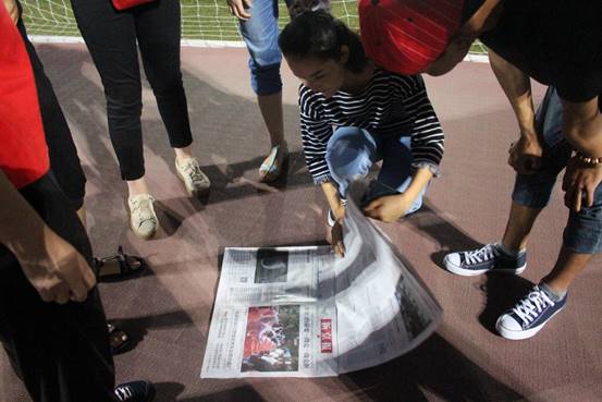 首先,同学们在小组内部进行自我介绍并轮流重复,来自各地的同学们一起欢笑畅谈,场面一度十分热烈。随后,“谁是卧底”、“五角一块”等游戏赢得了同学们的喜爱,输的同学接受真心话大冒险的惩罚。我们看到场上有同学手拉手深情对视、也有同学接受拍表情包的惩罚。随后、叠报纸、趣味接力等游戏将活动推向高潮!在亲密的活动与游戏中,同学们不再拘谨,他们一同欢笑、游戏,度过娱乐的时光。