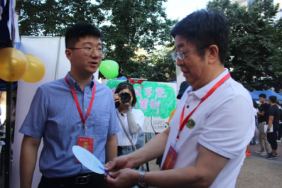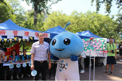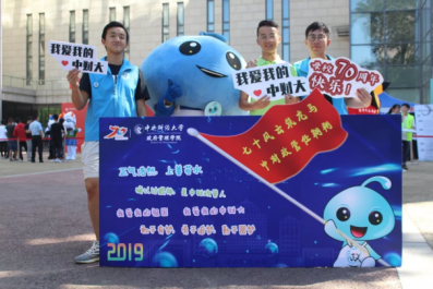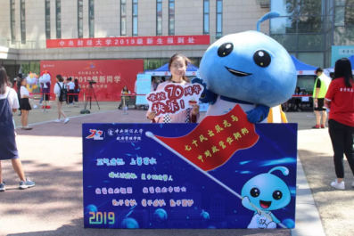 诚挚的服务让新生和家长们感到丝丝舒心,精美的展板更是让新生和家长们阵阵欣喜。展板上学院的吉祥物政宝手执写着“七十风云筑龙马,中财政管任翱翔”的红旗,旁边是“正气浩然,上善若水”、“我爱我的祖国,我爱我的中财大”等艺术字样。精美的展板和可爱的政宝吸引了许多新生合影,为大学生活的第一天留下了珍贵的纪念。此外,今年学院为每一位新生都准备了精美的小礼品——钥匙扣和扇子。钥匙扣一面是热情欢愉的政宝,另一面则是中财大校徽和“kaiyun开云官方网站”的字样。扇子则以蓝色为底,一面是政宝可爱的头像和“kaiyun开云官方网站”“正气浩然,上善若水”的字样,另一面则是点赞手势的词云,词云囊括了学院的院训——正气浩然,上善若水、学院的专业名称和专业术语等,直观而有效地向新生们介绍了kaiyun开云官方网站。扇子底部还有“我赞我的政管19,我爱我的中财大”字样。纪念品虽小,但是将迎新与中财大70周年有机结合,在具有学院特色的同时将视野放大,颇有思想。