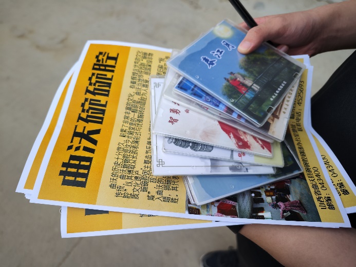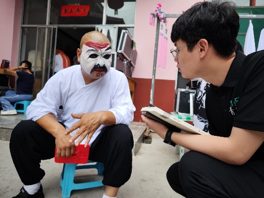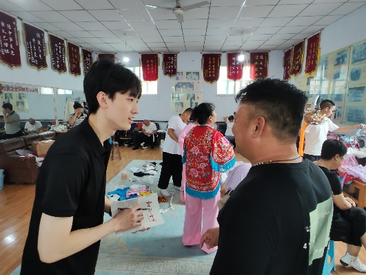 7月29日,队员们带着戏团提供的戏剧光碟和团队制作的宣传单,走进曲沃县乐昌镇马庄村、苏村、西南街等村子,在碗碗腔戏剧的听众中开展了广泛采访调查。对于碗碗腔传承与发扬的难点,村民们阐述了自己的看法——“村里人口流失,碗碗腔听众也越来越少了”、“学唱戏挣不到钱,年轻后生学这行没出路”……非遗的传承发扬道阻且长,成员们更加深刻体会到作为青年的使命担当。小队成员杨拓航表示:“中华优秀传统文化是我们的根脉,身为中国青年,我们会保护根脉、立足根脉,让老祖宗留下来的东西在新时代焕发新的色彩!”