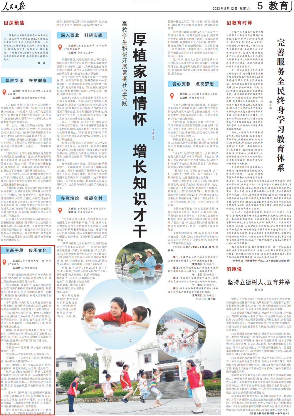 2023年8月12日,在《人民日报》刊发的文章《厚植家国情怀 增长知识才干 (深聚焦)》和共青团中央发布的公众号文章《大学生暑期社会实践,原来可以这么干……》中,开云官网“‘语’润乡村”社会实践团队均获得到了报道关注。