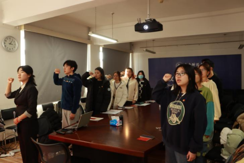 仪式第六项,团委学生副书记薛涵月带领全体团员进行入团宣誓