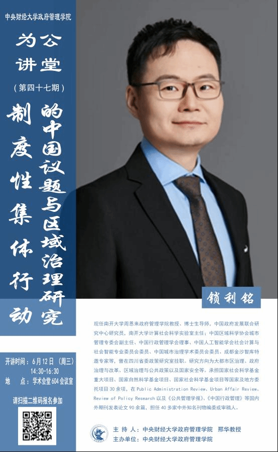 讲座主题:制度性集体行动的中国议题与区域治理研究