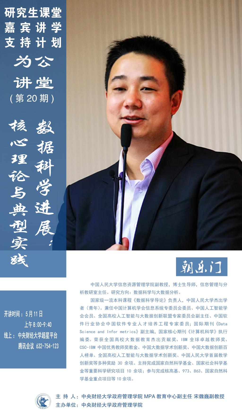 嘉宾简介:朝乐门,中国人民大学信息资源管理学院副教授,博士生导师,信息管理与分析教研室主任。研究方向:数据科学与大数据分析。国家级一流本科课程《数据科学导论》负责人,中国人民大学杰出学者(青年)。兼任中国计算机学会信息系统专委员会委员、中国人工智能学会会员、全国高校人工智能与大数据创新联盟专家委员会副主任、中国软件行业协会中国软件专业人才培养工程专家委员;国际期刊《Data Science and Infor metrics》副主编,国家核心期刊《计算机科学》执行编委。荣获全国高校大数据教育杰出贡献奖、IBM 全球卓越教师奖、CSC-IBM中国优秀教师奖教金、中国大数据学术创新奖、中国大数据创新百人榜单、全国高校人工智能与大数据学术创新奖、中国人民大学首届教学创新奖等多种奖励30余项。主持完成国家自然科学基金、国家社会科学基金等重要科学研究项目10余项;参与完成核高基、973、863、国家自然科学基金重点项目等10余项。