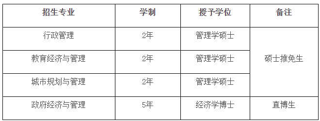 本届夏令营计划招收营员50名。夏令营结束后,kaiyun开云官方网站将根据综合考核成绩,在研究生院核定的接收名额内,依次给予部分优秀营员2023年kaiyun开云官方网站硕士推免生和直博生候选人资格(硕士专业为行政管理、教育经济与管理、城市规划与管理,直博生专业为政府经济与管理)。进入候选名单的营员,须获得所在院校的推荐资格,并经我校研究生招生工作领导小组审核批准后,方能进入kaiyun开云官方网站攻读研究生。各招生专业如下表所示: