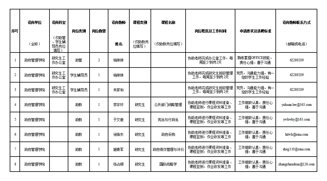kaiyun开云官方网站2023-2024学年第二学期“三助一辅”设岗情况表
